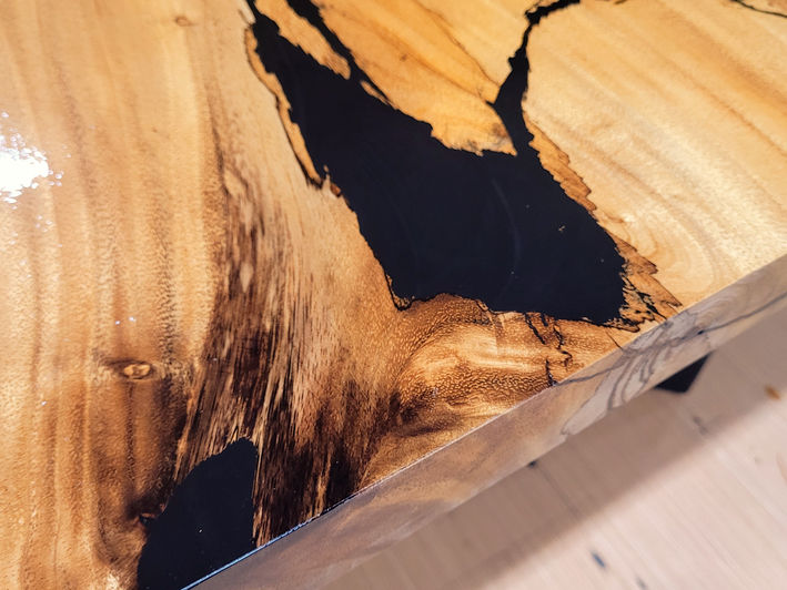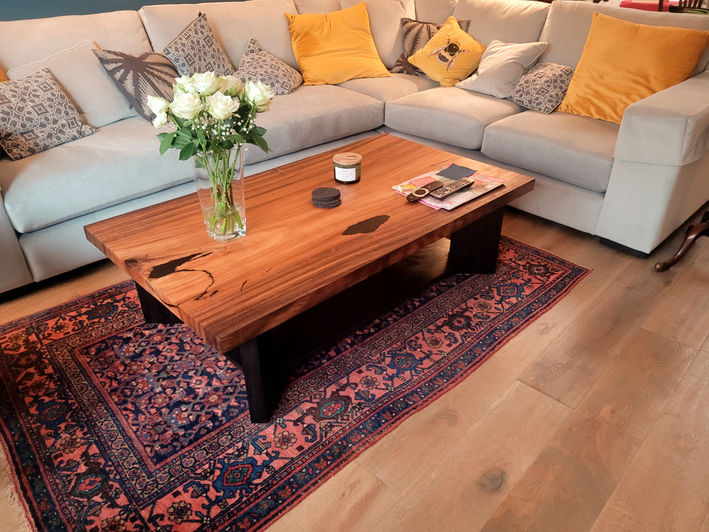 This coffee table is made with Ash for the legs and shelf, which I stained black after my client saw the black Ash shelving unit, and a Walnut slab for the top. The measurements of this table are quite substantial, being 140x80cm, with top and legs to a thickness of 5cm. Needless to say it weighs quite a bit. It was one of those convenient pieces that allowed me to draw everything out in 1:1 scale so I could make sure all the measurements were perfect. I flattened the top slab, cut it to its final size filled the voids with epoxy, finally sanding up to 240. The base was finished in a water base polyurethane because it doesnt affect the stain in anyway, other finishes can strip it off slightly. The top was then finished in hardwax oil due to its matt finish, fantastic hydrophobic properties and its look on epoxy. I was very pleased with the final look of the piece and hope it will serve for decades to come.